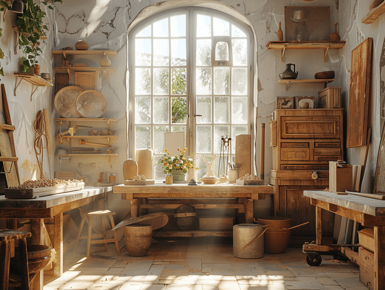 La conception d’un atelier de sculpture est une étape primordiale, souvent négligée par les débutants. Un espace bien agencé influe directement sur l’efficacité du flux de travail et la qualité de la production artistique. Choisir un lieu dédié à la sculpture, où matériaux et outils sont à portée de main, et où les œuvres peuvent être laissées en état d’avancement sans entraver les activités quotidiennes, est fondamental. Les sculpteurs sont encouragés à réfléchir à la disposition de leur espace, en privilégiant les surfaces de travail à hauteur ajustable et un éclairage adéquat, tant pour le confort que pour la précision du geste.